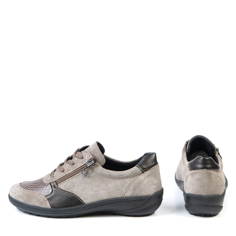 This shoe, available in three classic fall colours, has a fun textured print! The front is stretchy, allowing for unmatched comfort. The zipper facilitates foot insertion. You can also insert your orthotics thanks to the removable insoles.