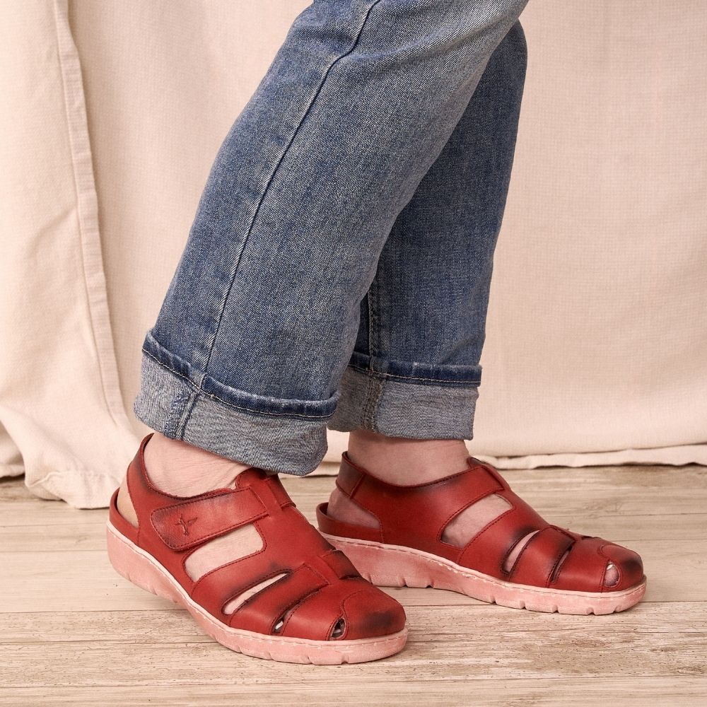 This "fisherman" type red sandal will be your first choice for your walks and summer activities thanks to its comfort. It all purpose-look and the possibility to insert your orthotic will make you love them.