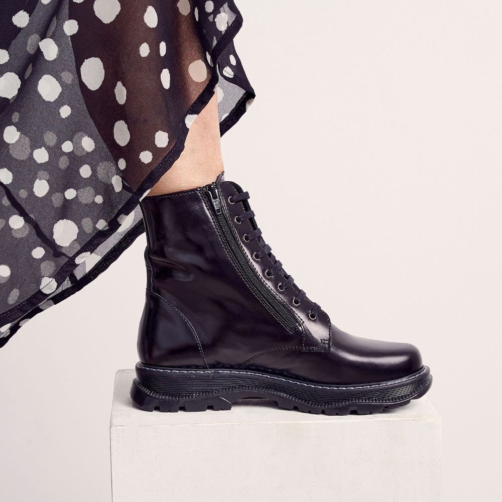 This beautiful black bootie will become your go-to choice for fall! Its trendy sole and print will enhance your fall wardrobe. You'll be amazed by its ease of insertion with the two zippers and laces. Insert your orthotics thanks to the removable insole.
