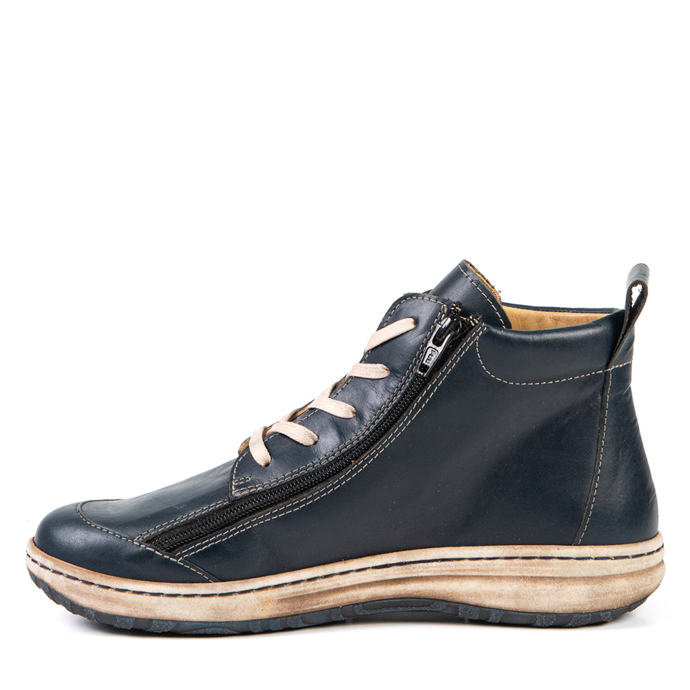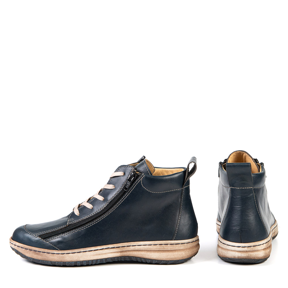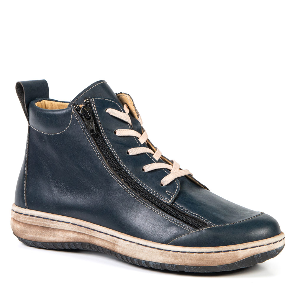 This short bootie, available in three classic fall colours, will delight you. Its look is both versatile and trendy. Its two zippers allow for a wide opening, helping with the insertion of your foot or your orthotics.