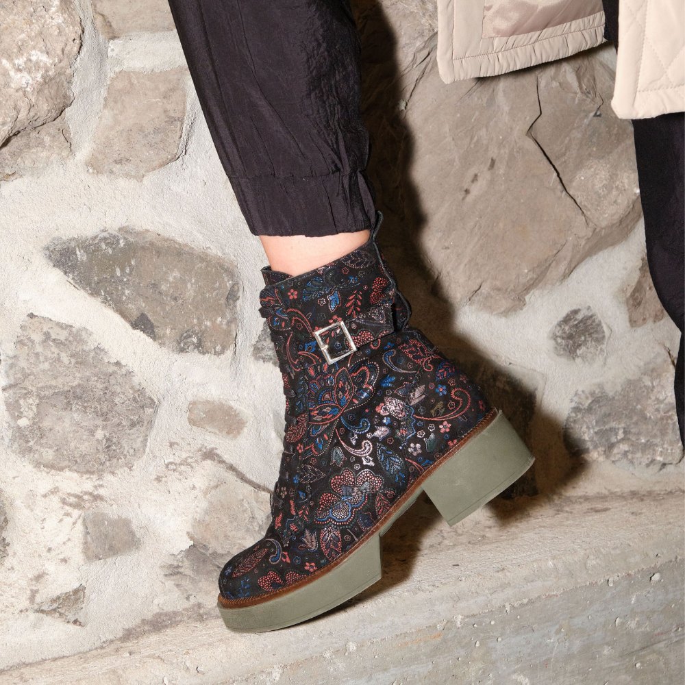 Meet your new favourite floral printed boot — trendy and orthotic-friendly! With a convenient side zipper, it’s easy to slip on. Its wedge sole adds a touch of height while maintaining exceptional comfort. Style, support, and practicality in one perfect design.