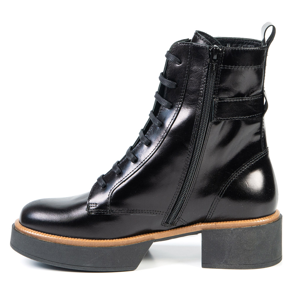 Say hi to this trendy orthotics friendly black boot! Equipped with a side zip, you'll easily slip it on. Thanks to its wedge sole, you'll have some extra height, without feeling it.