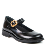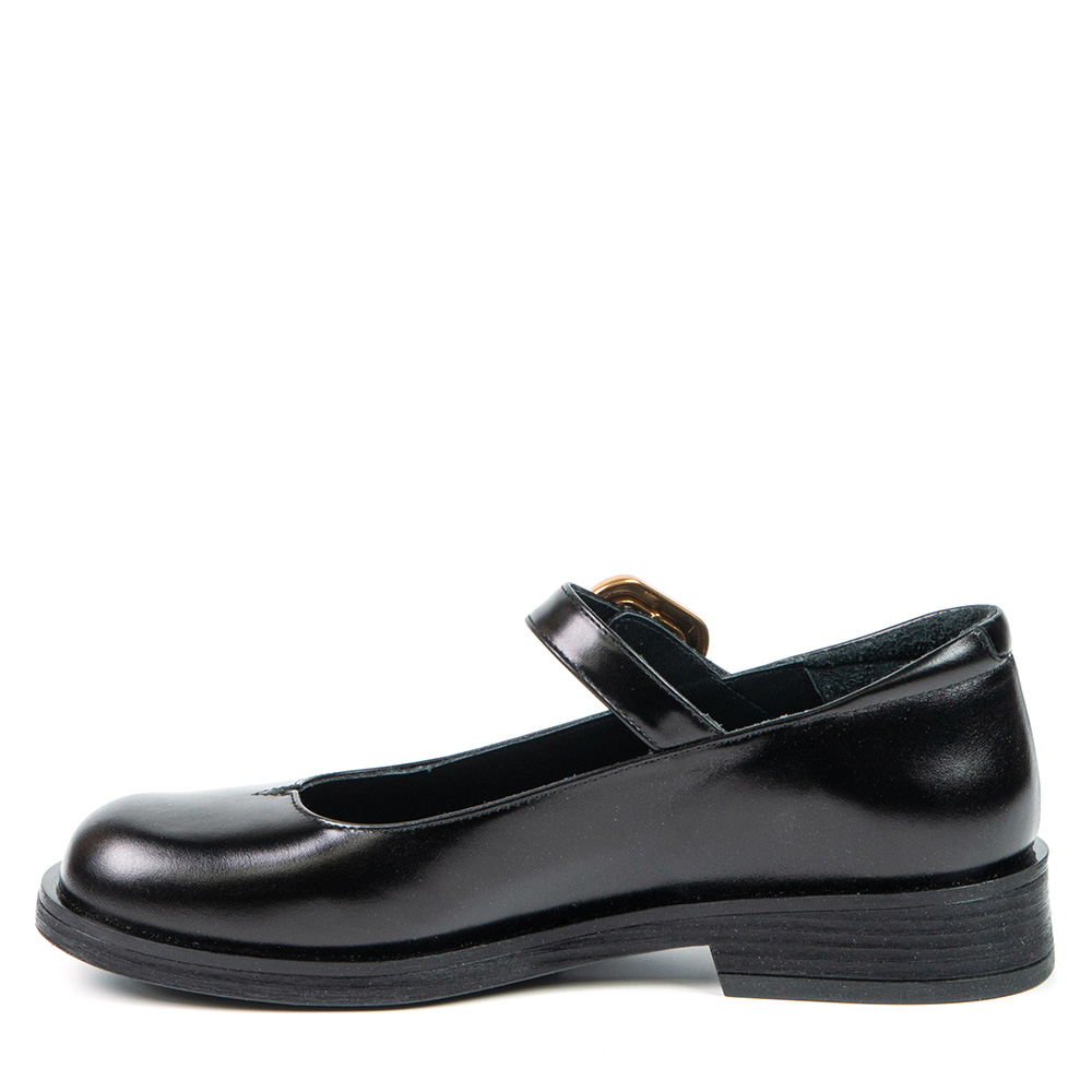 This black Mary Jane-style leather flat blends retro charm with modern comfort. The adjustable velcro strap with a gold buckle adds an elegant touch and ensures a secure fit. With its removable insole, it allows the use of orthotics for personalized comfort. Perfect for everyday wear, work, or outings.