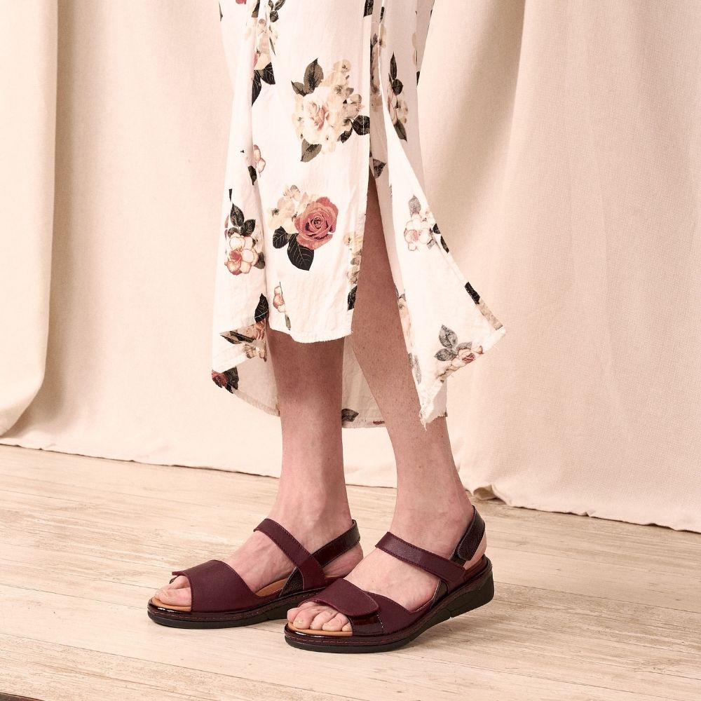 Perfect for the comfort of your feet and for wearing orthotics, this burgundy sandal will accompany you in all your outings. Your new sandals will sublimate your feet.