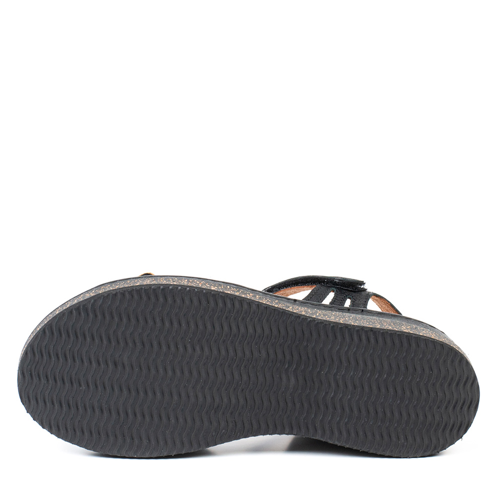 This elegant black women’s sandal combines modern style with superior comfort. Featuring two adjustable velcro straps, it allows for a precise and secure fit, while the back strap provides added stability when walking. The textured front detail adds a refined touch that easily elevates everyday outfits. Designed with a removable insole to accommodate custom orthotics, this sandal offers excellent support and lasting comfort, making it ideal for all-day wear.