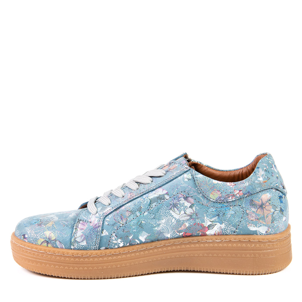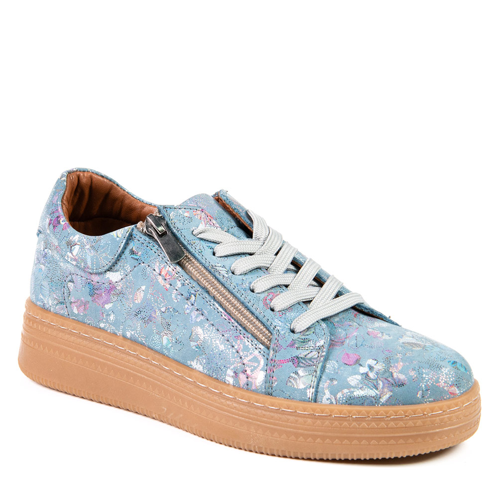 This blue patterned shoe adds a soft and feminine touch to your everyday outfits. The lace-up design ensures a secure fit, while the side zipper allows for easy on-and-off and simplifies orthotic insertion. The removable footbed provides excellent comfort for both orthotic wearers and those who do not wear orthotics. A stable and comfortable style designed for daily wear.