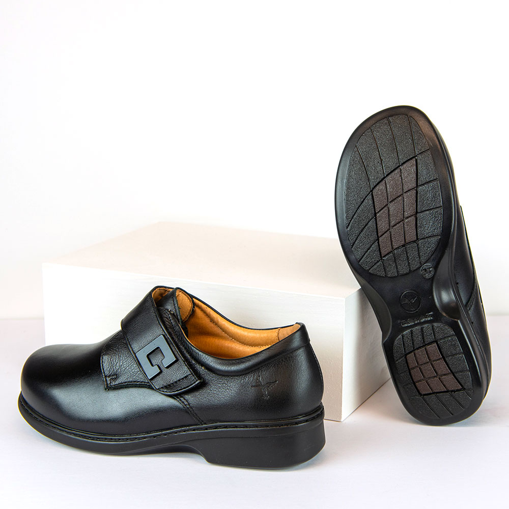 This Velcro shoe is very deep and ultra stretchy to allow your feet to settle in comfort. You can add your orthotics without any difficulty.