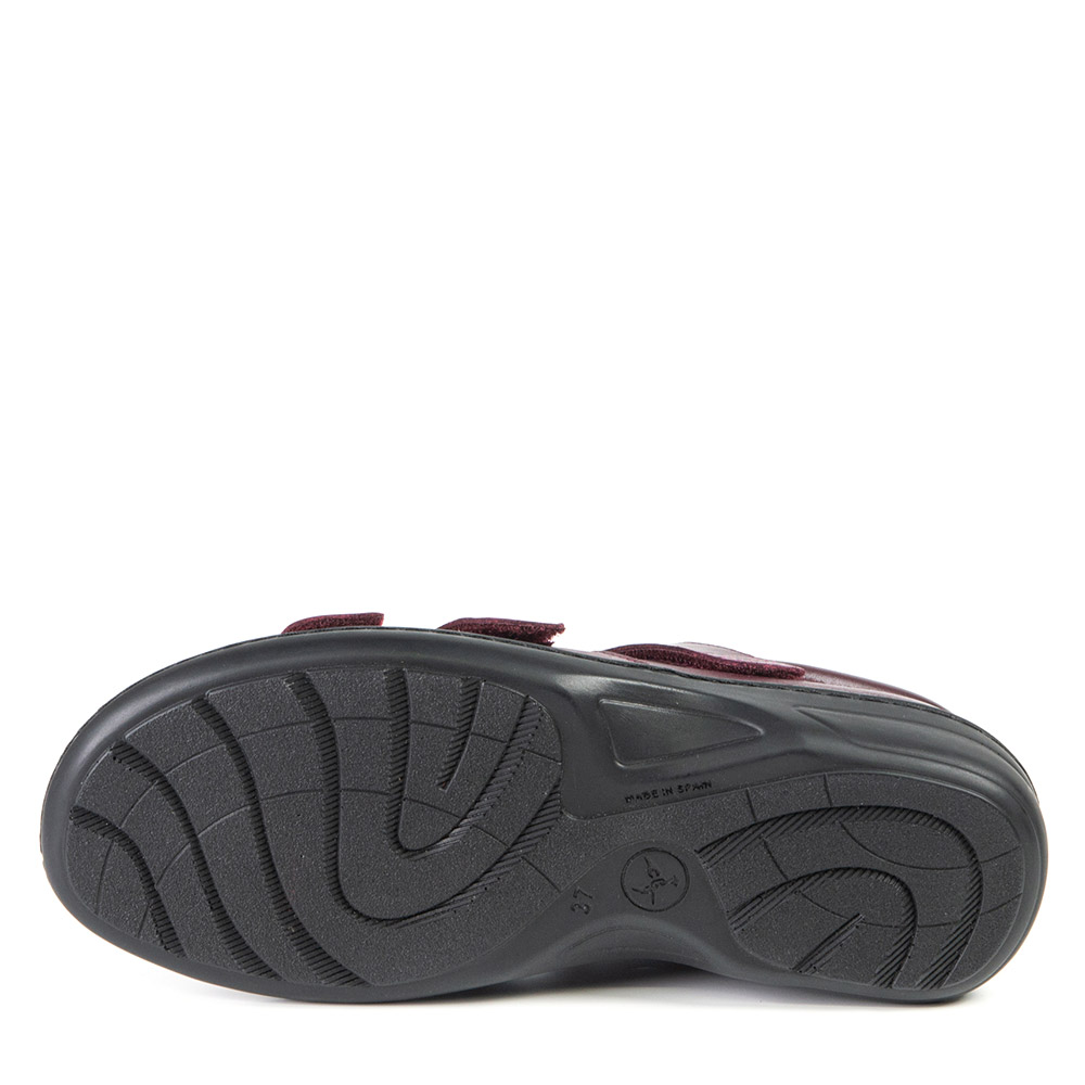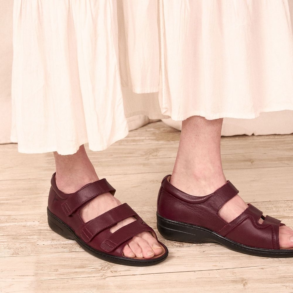 This burgundy closed heel sandal will give you a small height without neglecting your comfort. The Velcro straps are easily adjustable. You'll love it !