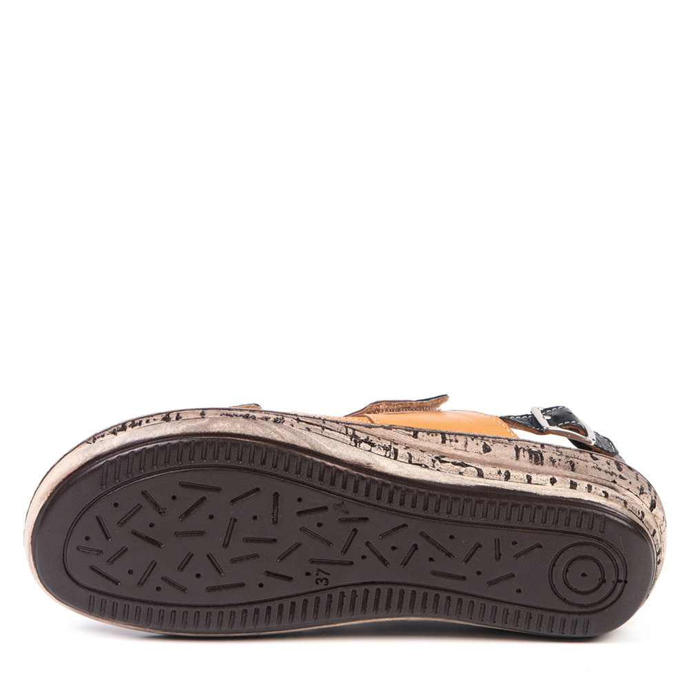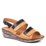 Discover this sandal with a wedge sole that accommodates orthotics thanks to the removable insoles. Adjust it to your comfort with the two velcro straps.