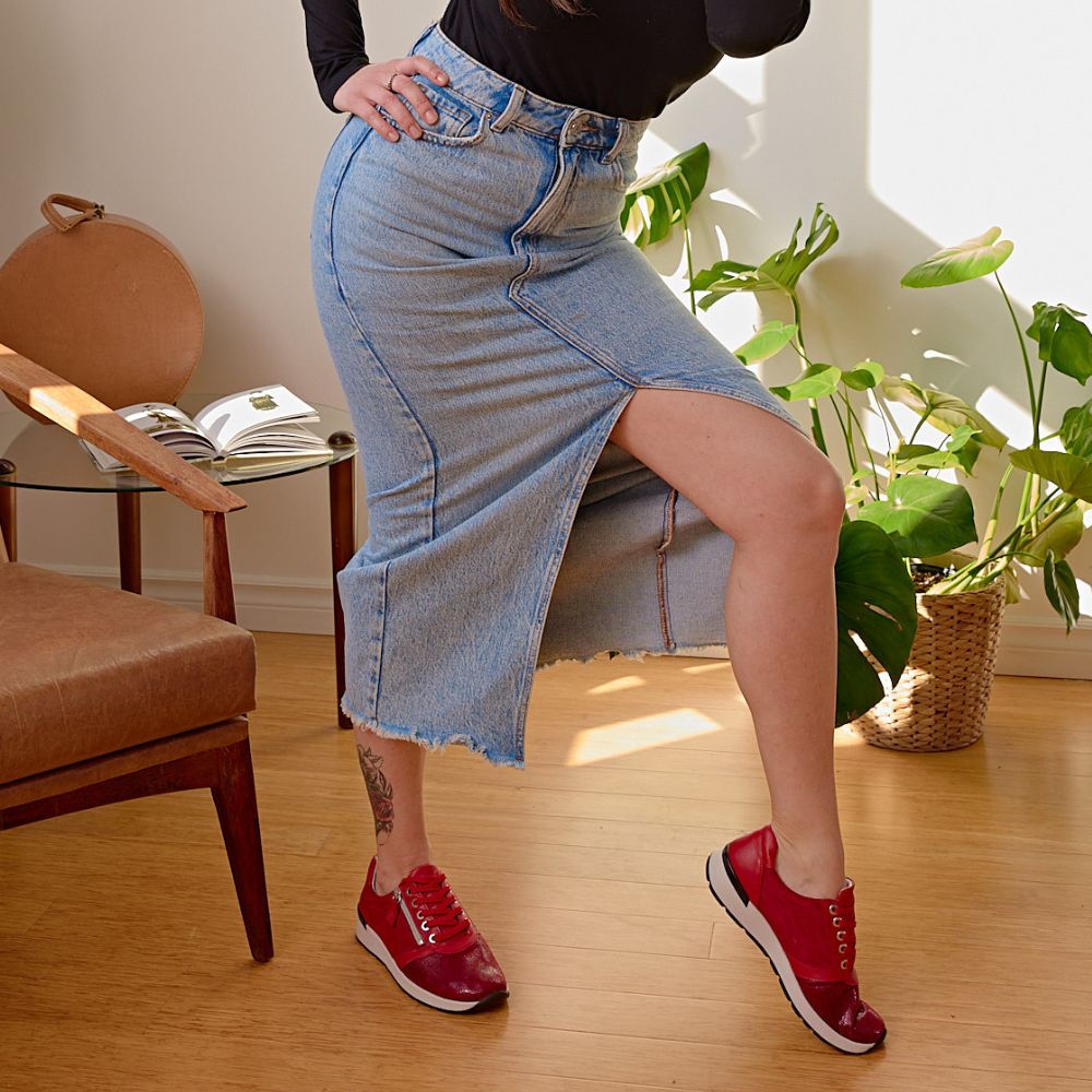 This red sneaker with a touch of glam allows the insertion of your orthotics, thanks to its removable insole. The zipper at the front allows an easy and quick insertion. You need this sneaker in your wardrobe!