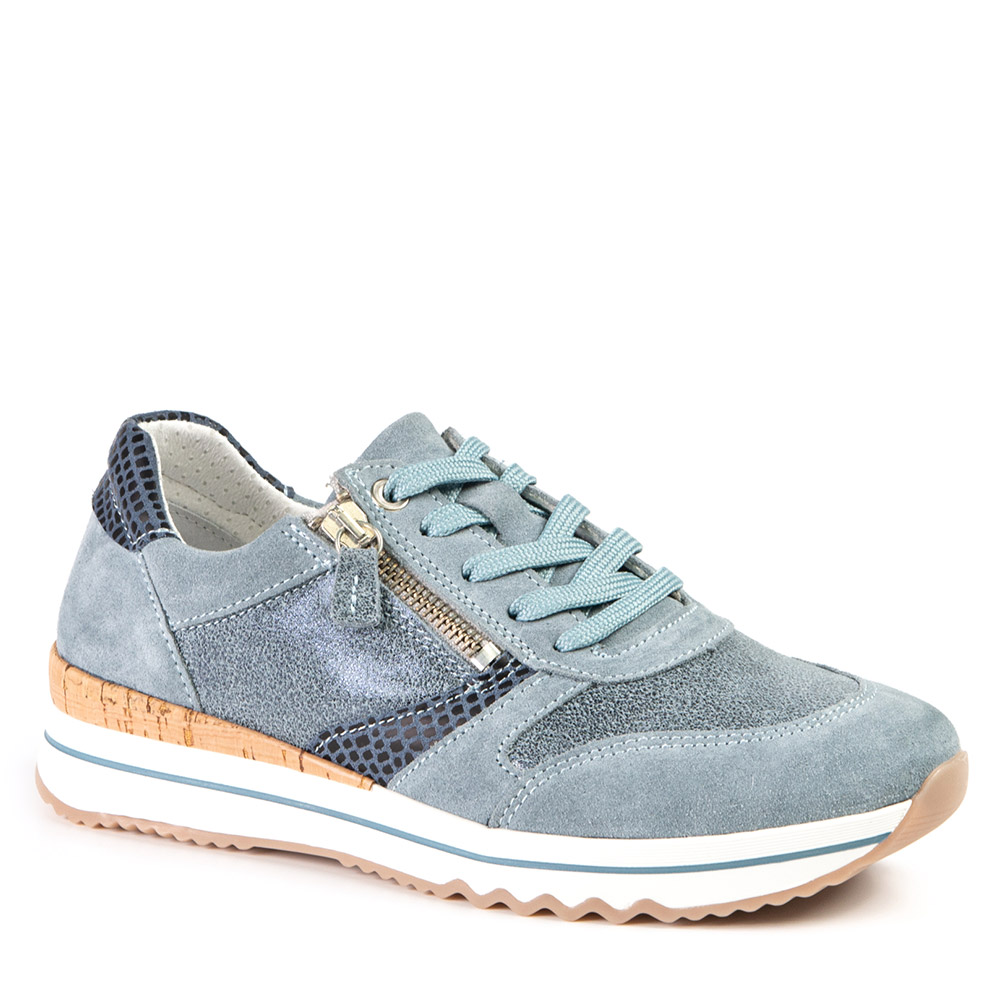Here is a trendy blue sneaker that stands out, thanks to its print and mix of texture. The zipper provides an easy and quick insertion, in addition to being able to insert your orthotics.