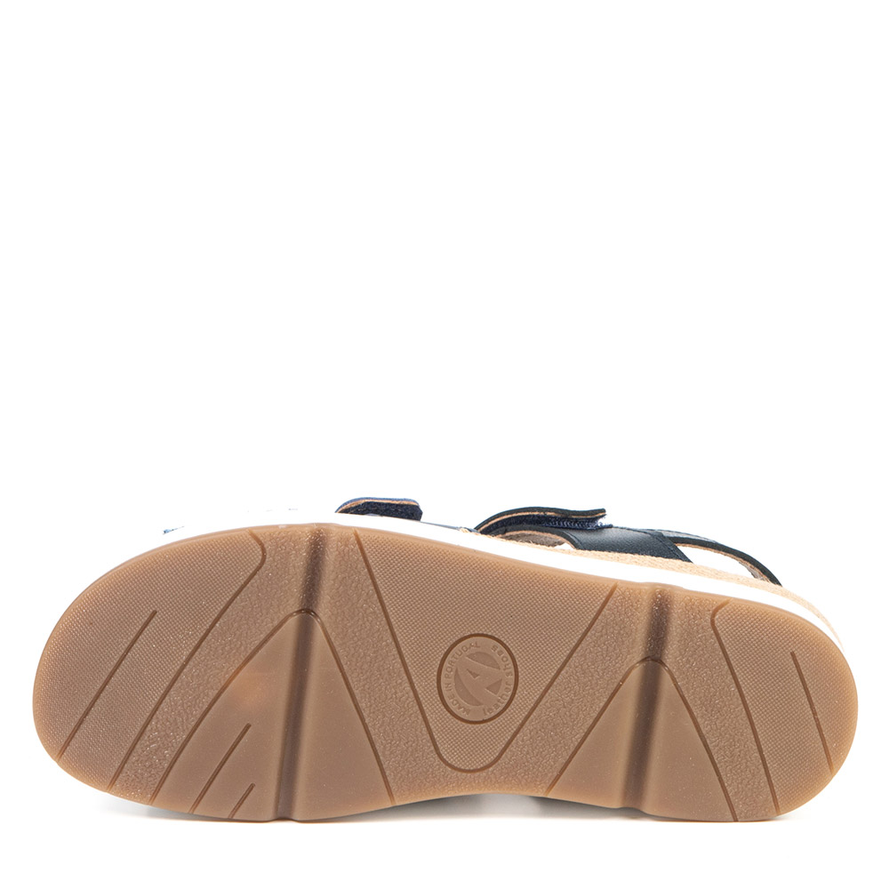 This beautiful navy blue sandal with wedge sole will charm you. These three velcro straps allow a perfect fit to satisfy both narrower feet as wider feet. Insert your orthotics thanks to the removable insole.