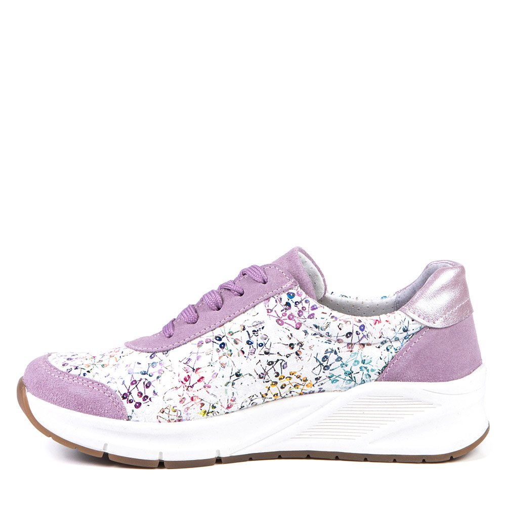 Discover this purple trendy sneaker that stands out thanks to its print. The zipper on top provides an easy and fast insertion, in addition to being able to insert your orthotics.