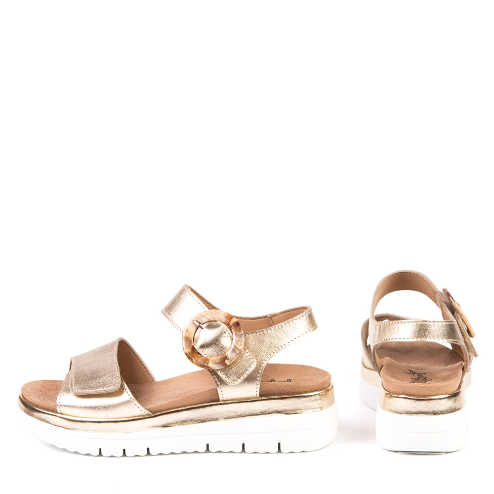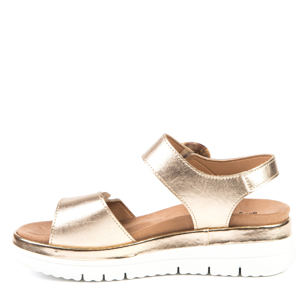 This beautiful gold sandal has a removable faux insole, allowing you to insert your orthotics, as well as two velcro straps that ensure a perfect fit. This sandal will elevate your feet this season!