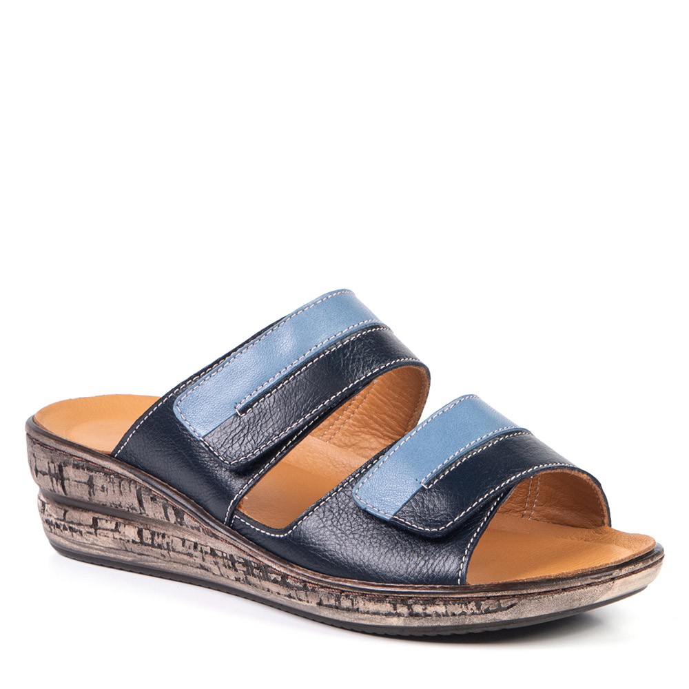 Slip on sandal with a wedge sole that accommodates orthotics thanks to the removable insoles. Adjust it to your comfort with the two velcro straps.