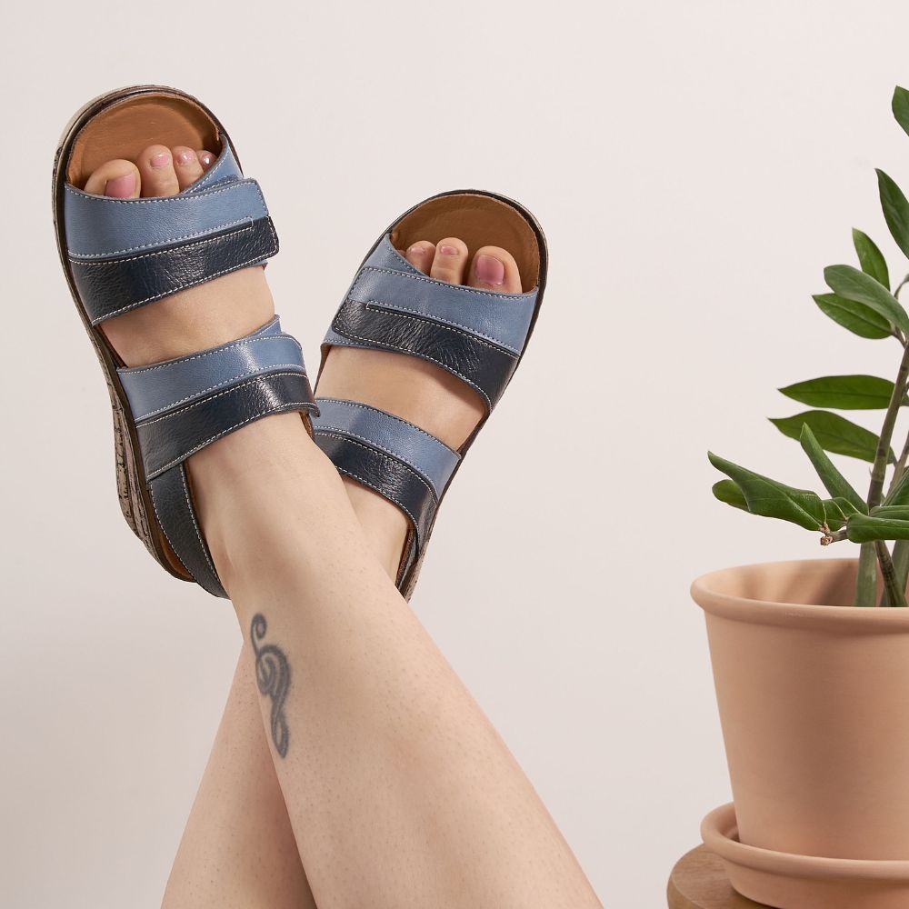 Sandal with a wedge sole that accommodates orthotics thanks to the removable insoles. Adjust it to your comfort with the two velcro straps.