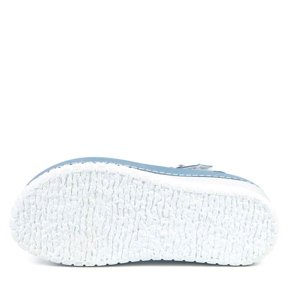 Discover this beautiful blue sandal with wedge sole. You will love it for its easy fit thanks to the two velcro straps and its removable insole allowing you to insert yours.