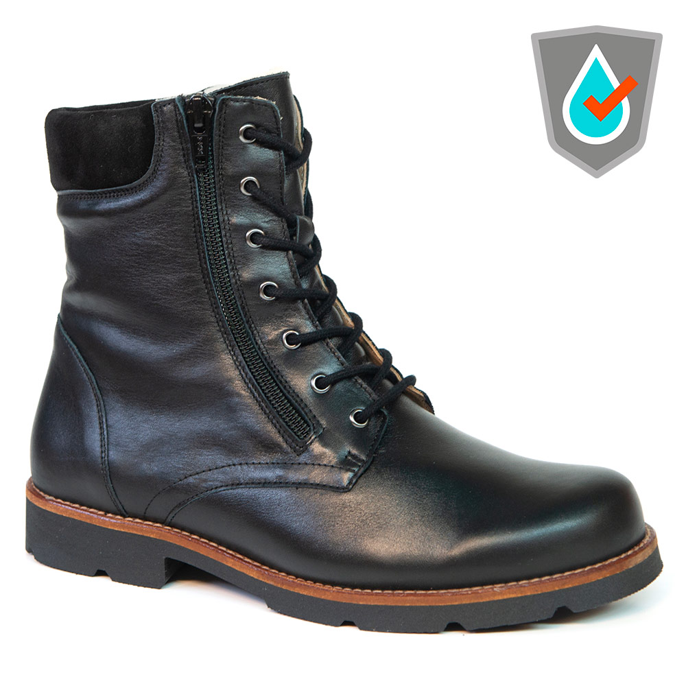 This unisex winter boot is waterproof and lined with real wool in order to keep your feet warm and cozy. The double zippers and laces allow for an optimal fit and comfort. The removable insole allows you to insert your orthotics.