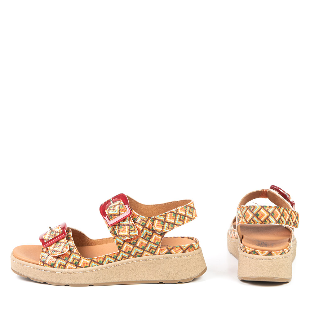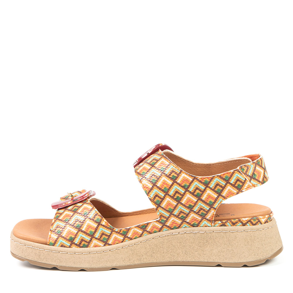 Flamboyant colours are always a win ! A orange sandal with platform sole with adjustable Velcro straps? We love it! From prints to ornaments, this style will accompany you on beautiful sunny days.