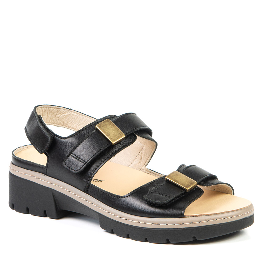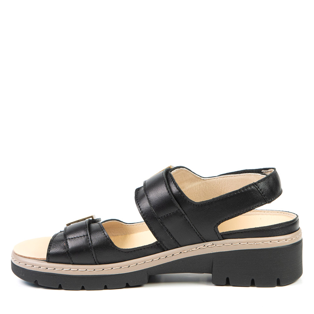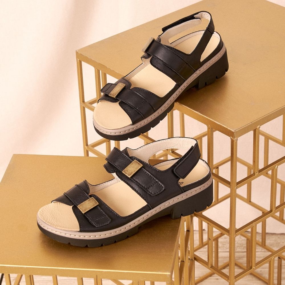 This black sandal has three velcro straps that allows the adjustment to you liking. As each of our styles, you'll be able to insert your orthotics thanks to the removable insole.