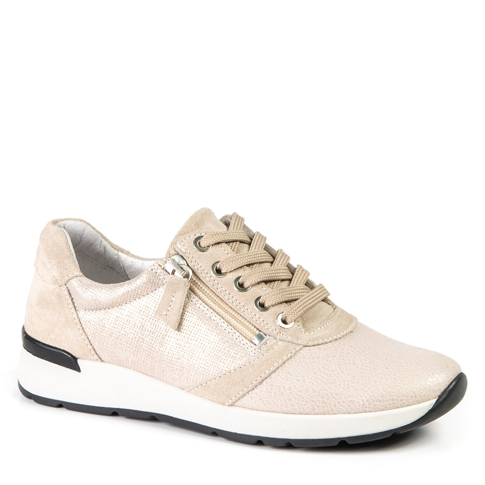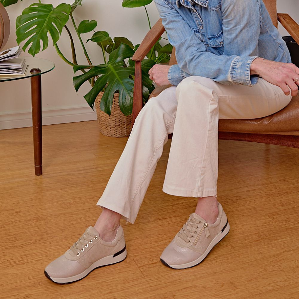 This beige sneaker with a touch of glam allows the insertion of your orthotics, thanks to its removable insole. The zipper at the front allows an easy and quick insertion. You need this sneaker in your wardrobe!