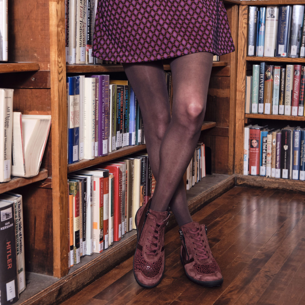 Ce bottillon court est classique, mais possède une touche métallique et un imprimé texturé amusant! La devanture est extensible, permettant ainsi un confort incomparable. La fermeture éclair facilite l'insertion du pied. Vous pourrez également y insérer vos orthèses grâce aux fausses semelles amovibles.
