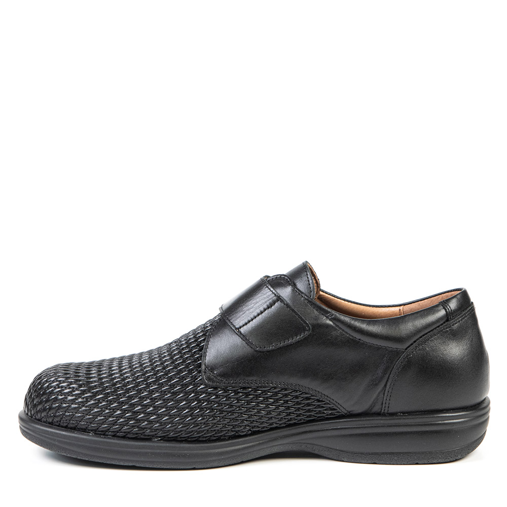 Cette chaussure dont le devant est texturé ajoutera une petite touche de plaisir à vos ensembles en gardant comme premier objectif de vous offrir le confort que vous méritez. Glissez-y vos orthèses au besoin. La devanture est entièrement extensible la rendant idéale pour de nombreux problèmes de pieds.