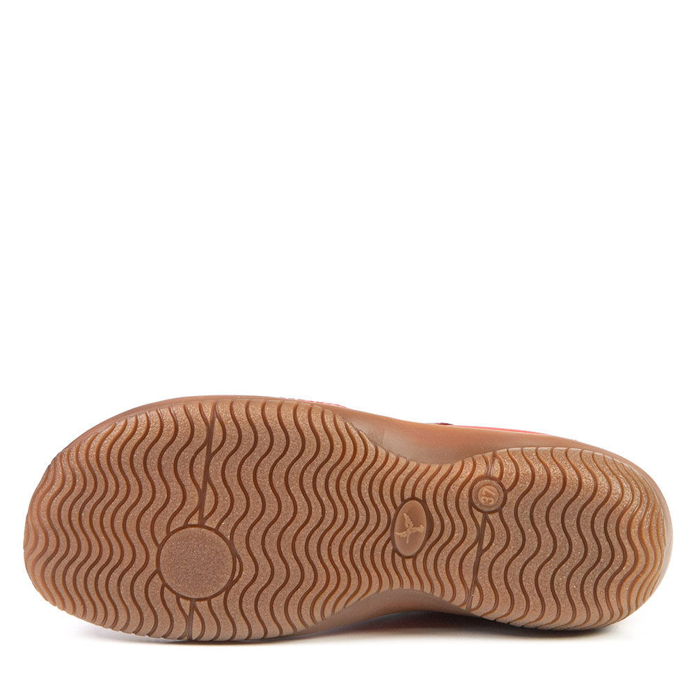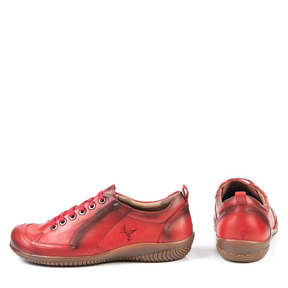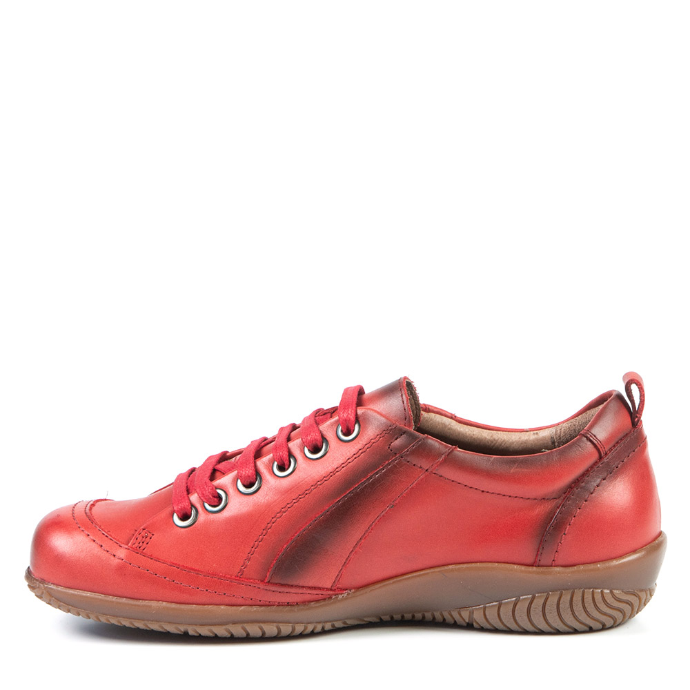 Ce soulier lacé rouge fait de cuir est large, possède une grande ouverture et permet l'insertion d'orthèses. Ce modèle classique perdurera dans le temps! Son confort vous surprendra.