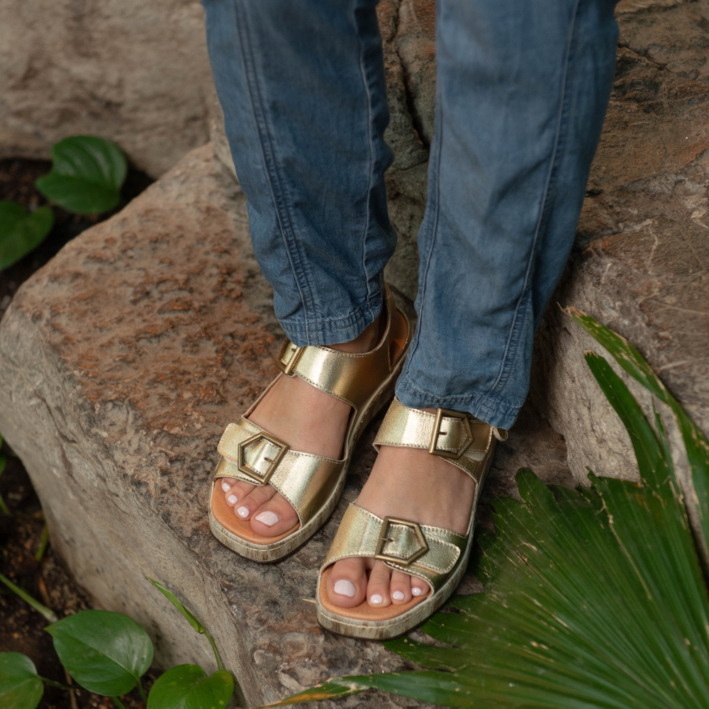 Cette sandale à courroies de velcro offre un ajustement précis et sécuritaire, idéal pour s’adapter aux variations du pied au fil de la journée. Sa semelle légèrement compensée procure une bonne stabilité tout en favorisant une marche confortable. Conçue pour accueillir des orthèses grâce à sa fausse semelle amovible, elle combine parfaitement soutien, confort et élégance, pour un usage quotidien en toute confiance.