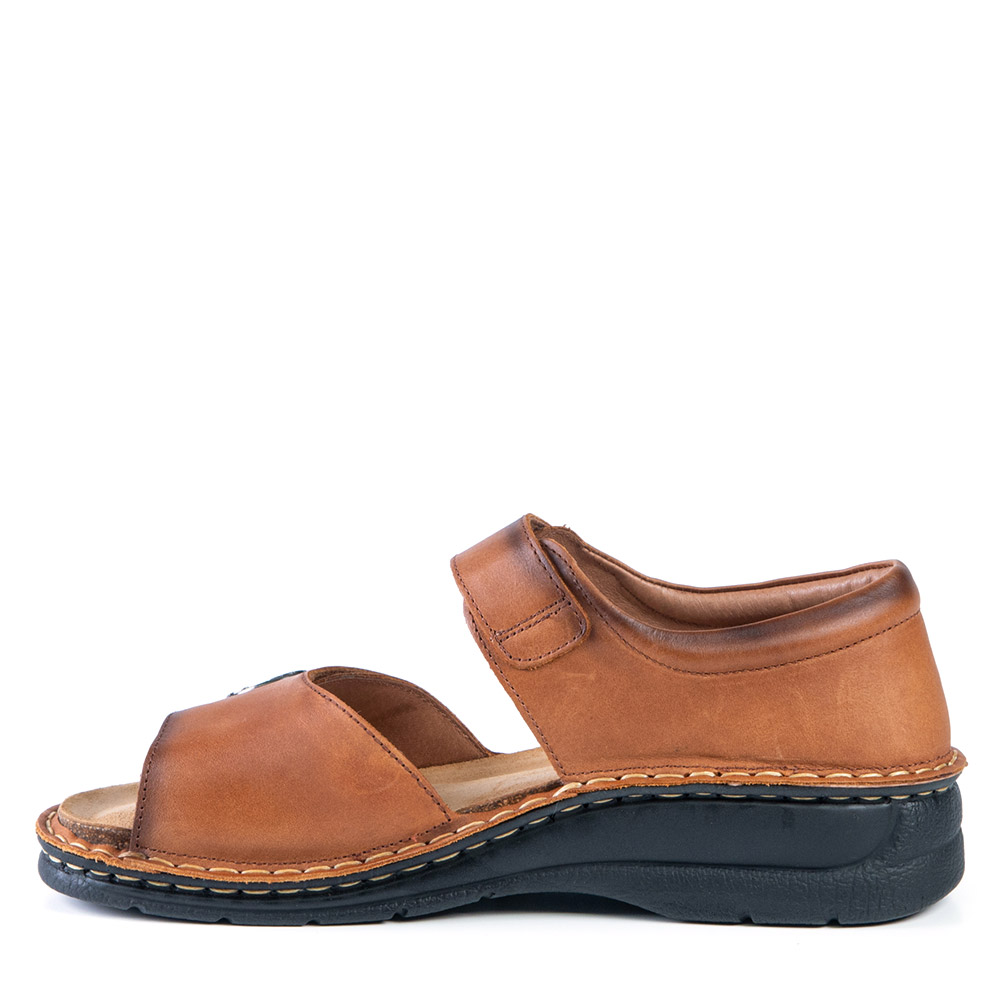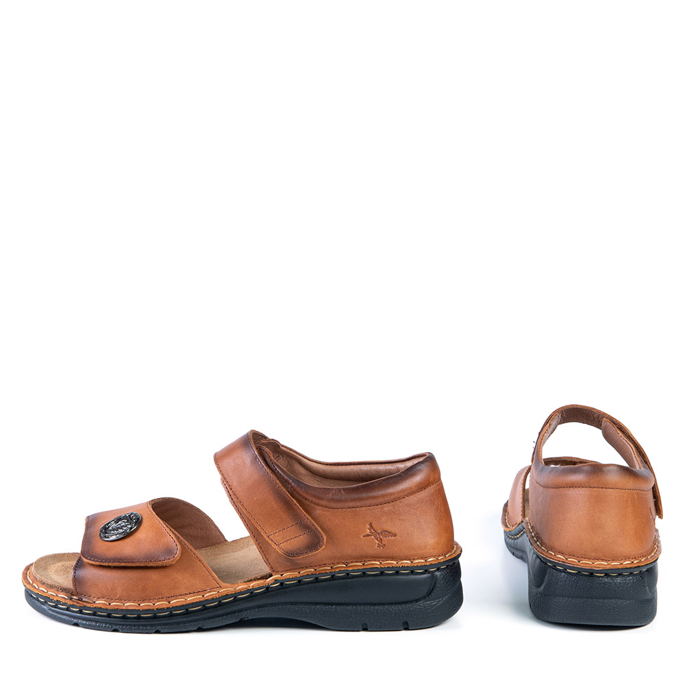 Cette sandale tan à talon fermé s'ajuste selon votre confort grâce à ces courroies de velcro et qui moule votre pied dû à son extensibilité. Ses détails de style ajouteront une touche intéressante à vos ensembles.