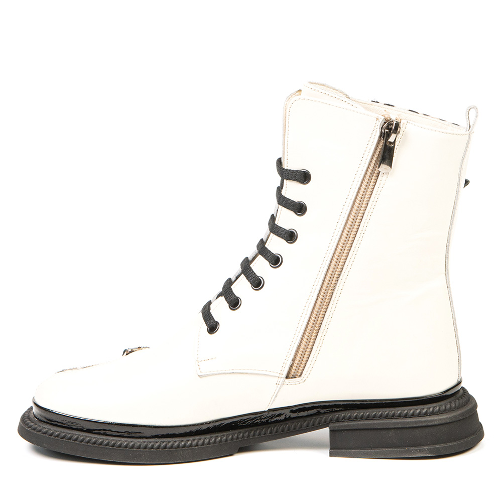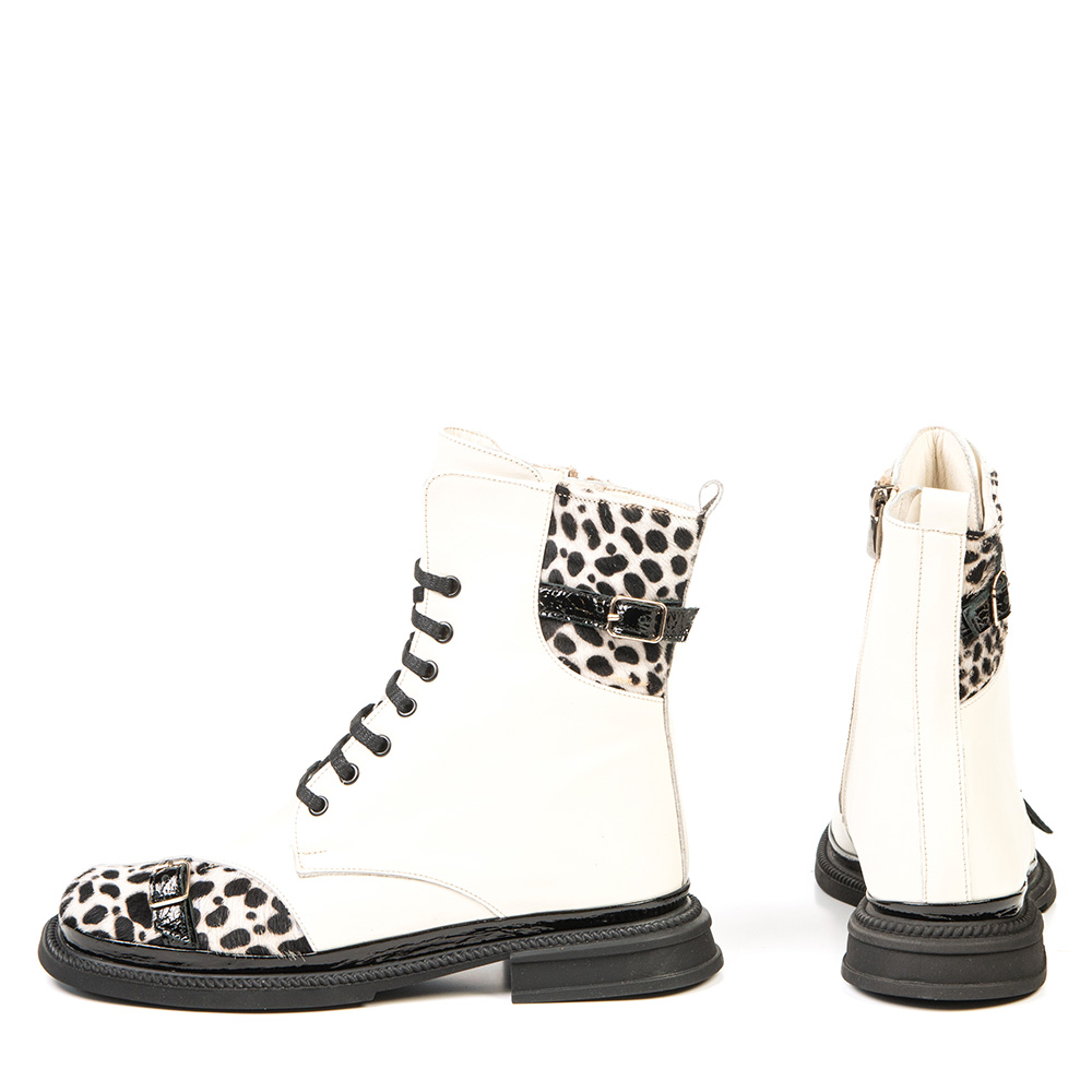 Apportez une touche audacieuse à vos tenues avec cette botte blanche. Ses détails texturés et ses boucles décoratives lui donnent un style unique. Confortable et fonctionnelle, elle est dotée d'une fausse semelle amovible pour vous permettre d’y insérer facilement vos orthèses.
