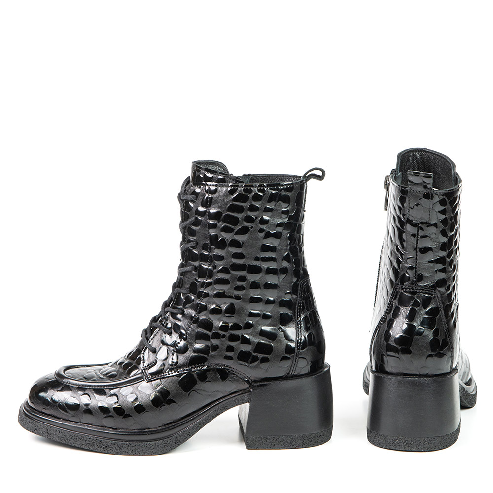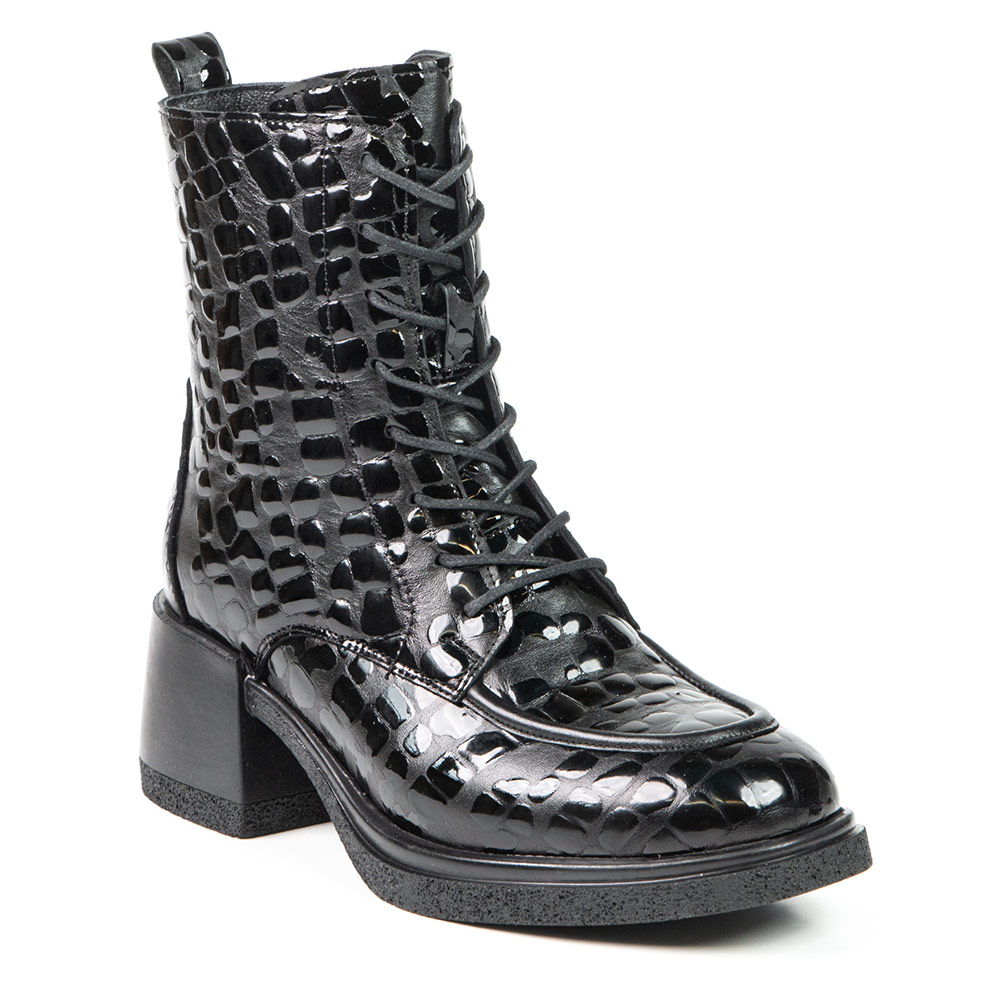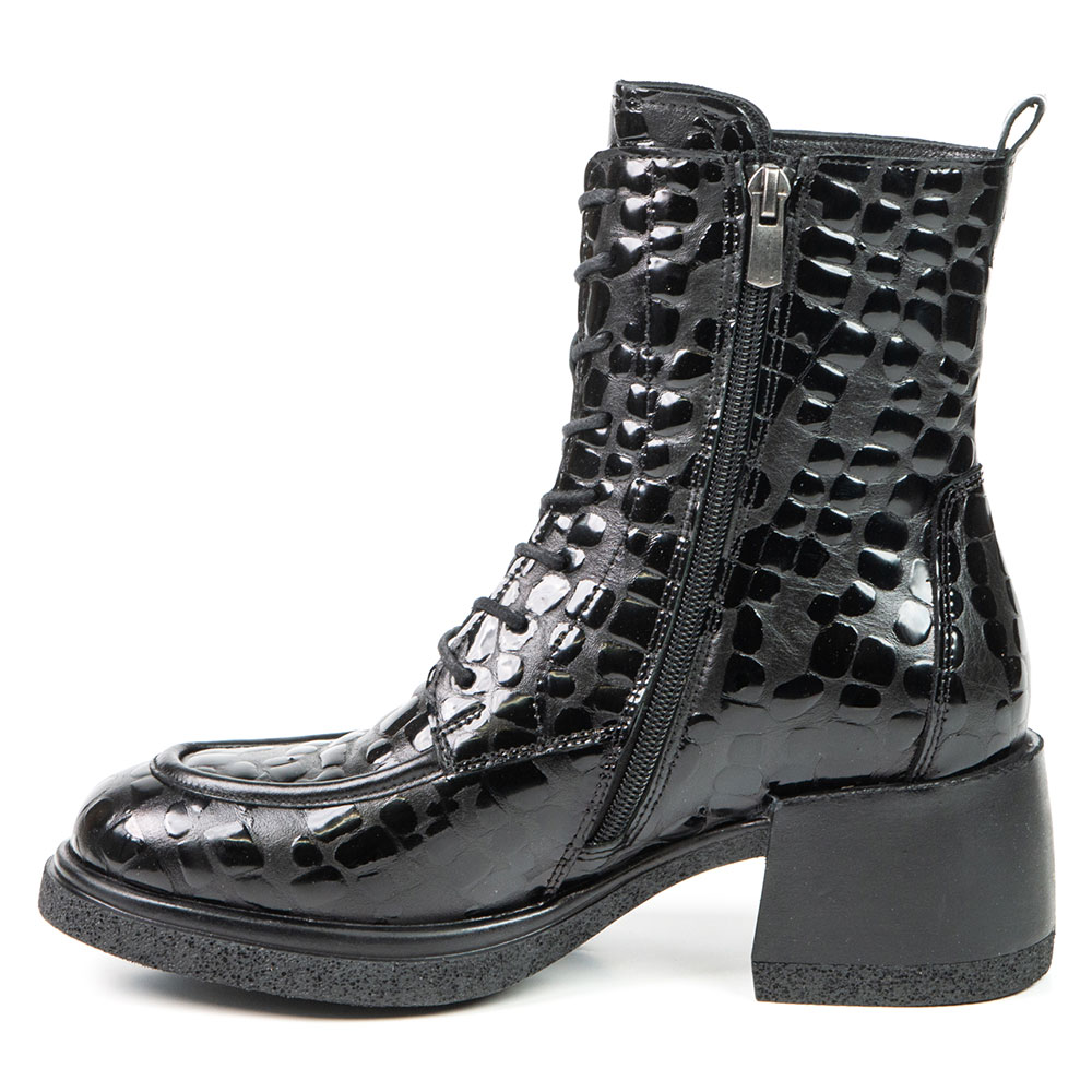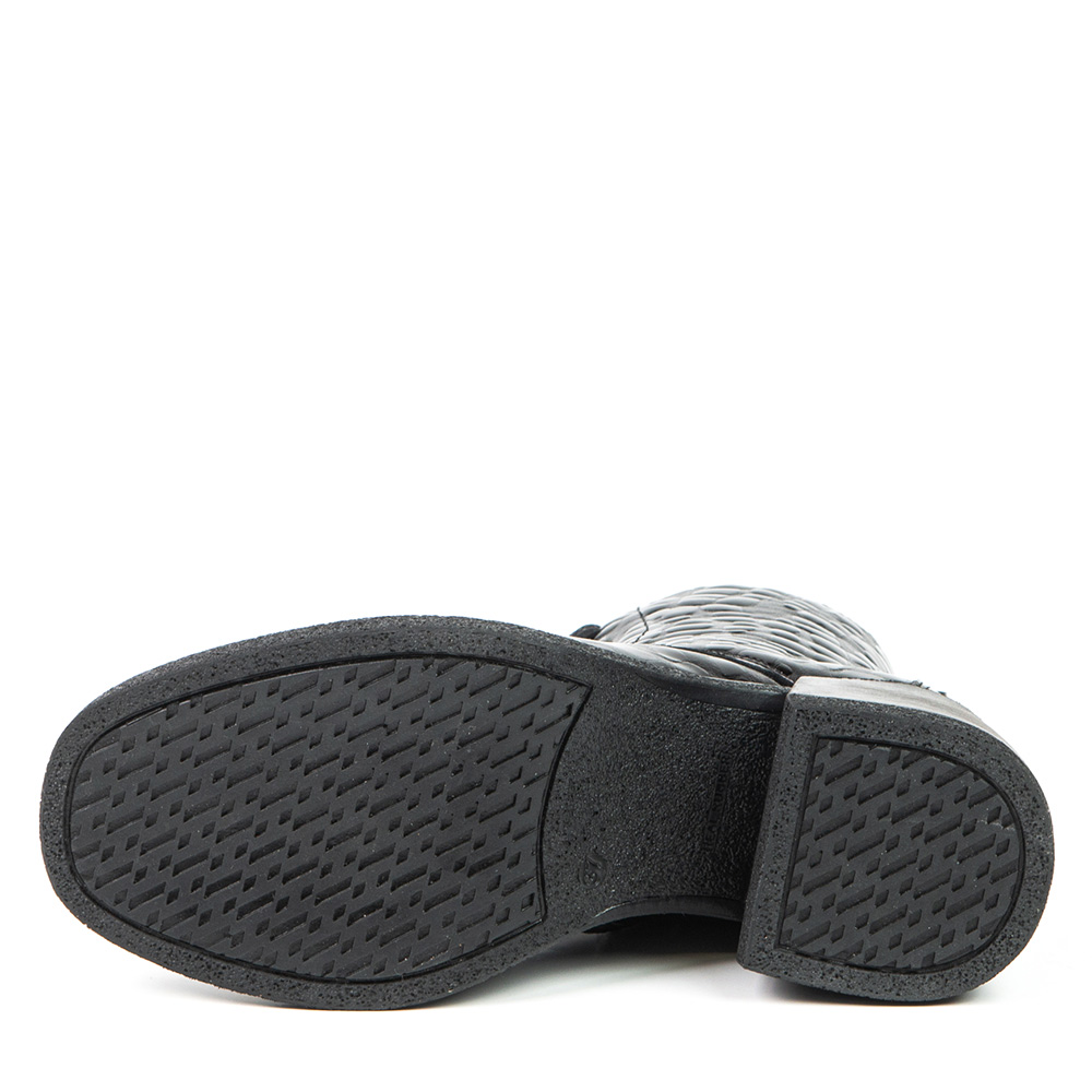 Affichez un look sophistiqué avec cette botte noire texturée. Son talon bloc et son laçage à l’avant ajoutent une touche stylée et féminine. Confortable et adaptée aux besoins spécifiques, elle est dotée d'une fausse semelle amovible pour permettre le port d’orthèses ainsi que d'une fermeture éclair pour une insertion facile.