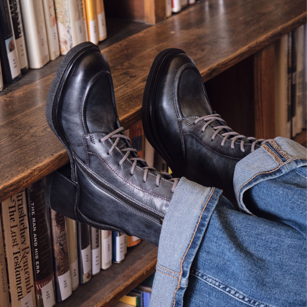 Affichez un look sophistiqué avec cette botte grise. Son talon bloc et son laçage à l’avant ajoutent une touche stylée et féminine. Confortable et adaptée aux besoins spécifiques, elle est dotée d'une fausse semelle amovible pour permettre le port d’orthèses ainsi que d'une fermeture éclair pour une insertion facile.