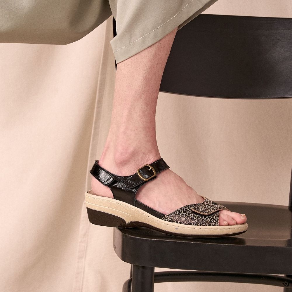 Cette sandale délicate et chic est parfaite pour l'été ou pour vos voyages au chaud ! Les trois courroies de velcro permettent un ajustement parfait à votre pied. Vous adorerez la partie coussinée à l'avant permettant le confort ultime pour les personnes qui souffrent d'Hallux Valgus (oignons).