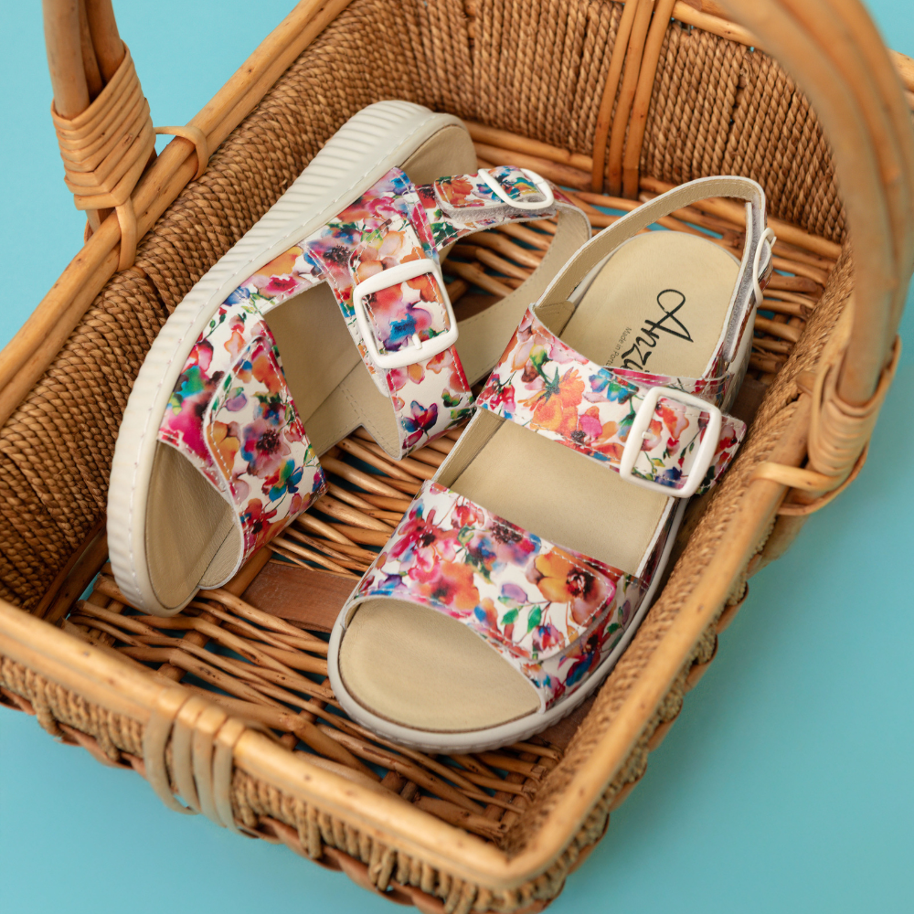 Cette sandale au motif floral coloré apporte une touche estivale et féminine à vos tenues. Les trois courroies ajustables en velcro permettent un ajustement précis et personnalisé, offrant un excellent maintien et convenant à différentes largeurs de pied. La fausse semelle amovible facilite l’insertion d’orthèses, tout en demeurant confortable pour celles qui n’en portent pas. Un modèle pratique, stable et facile à porter au quotidien.