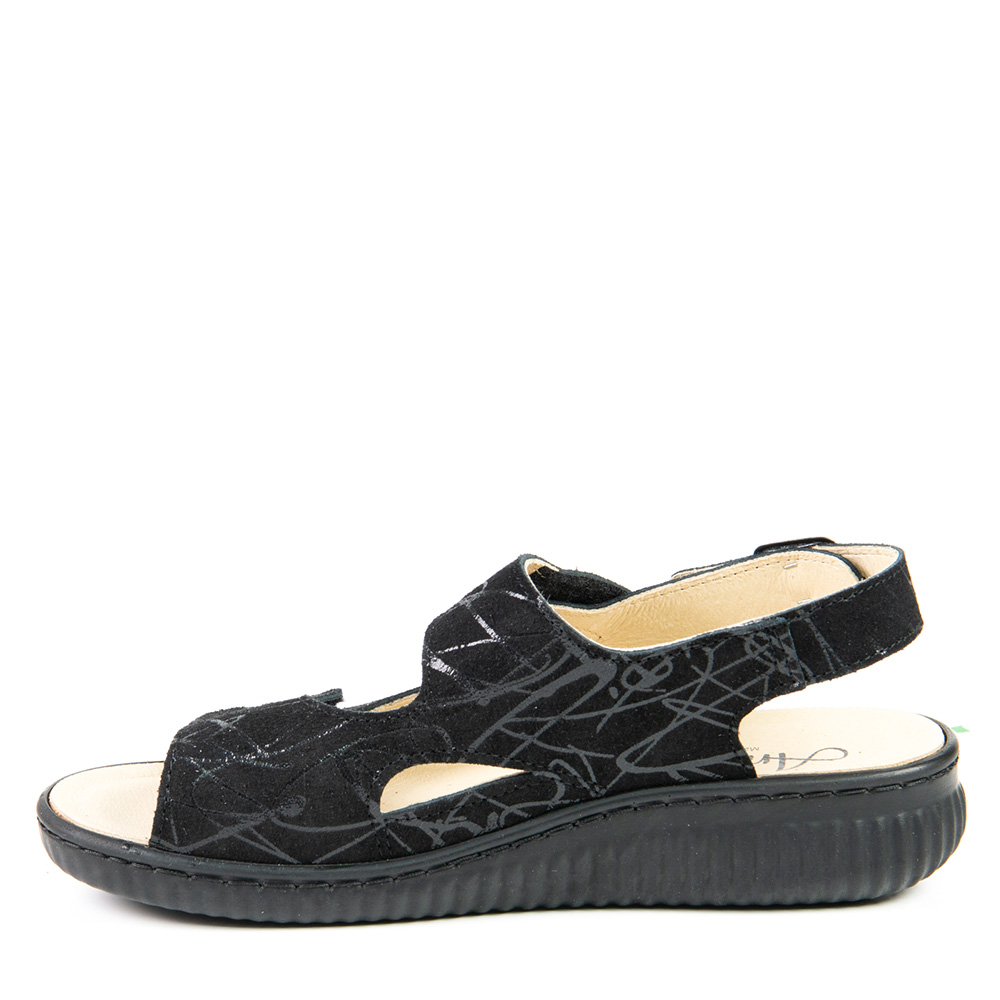 Cette sandale Anzia PO-248 se distingue par son look moderne et son grand confort. Ses deux courroies ajustables en velcro sur le dessus assurent un ajustement parfait, autant pour les pieds plus étroits que pour les pieds plus larges. La fausse semelle amovible permet d’y insérer facilement des orthèses, tout en demeurant confortable pour celles qui n’en portent pas. Un modèle pratique et élégant, idéal pour un port quotidien.