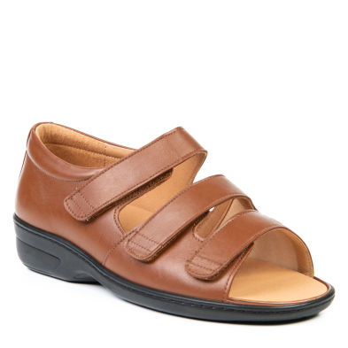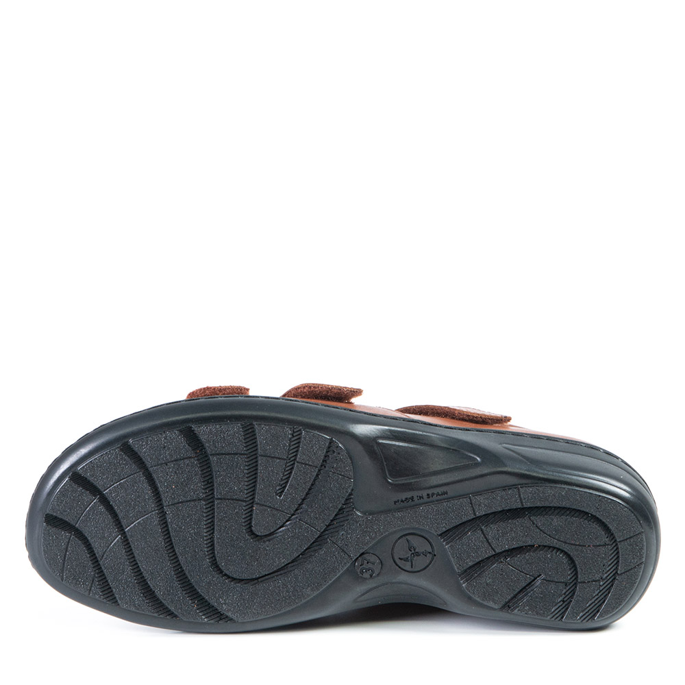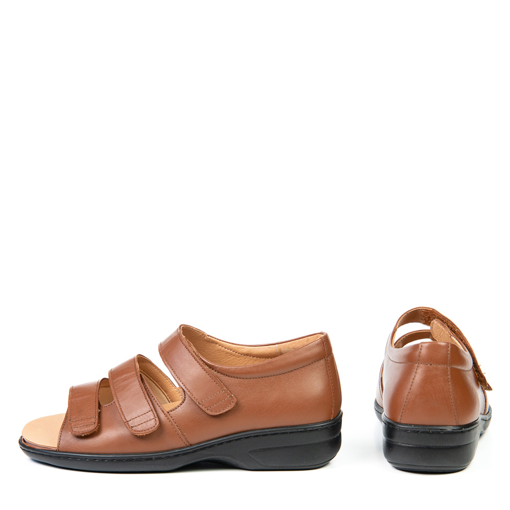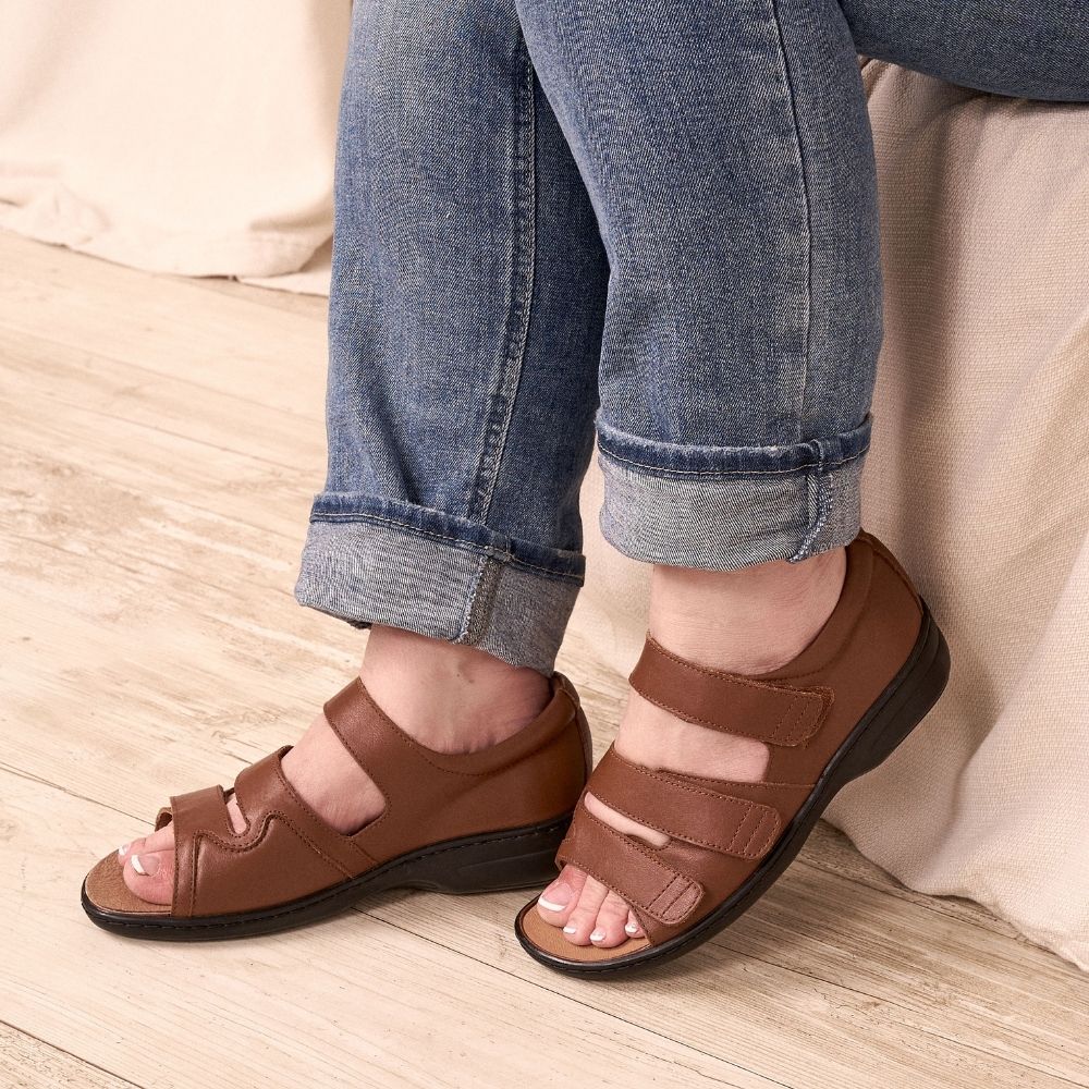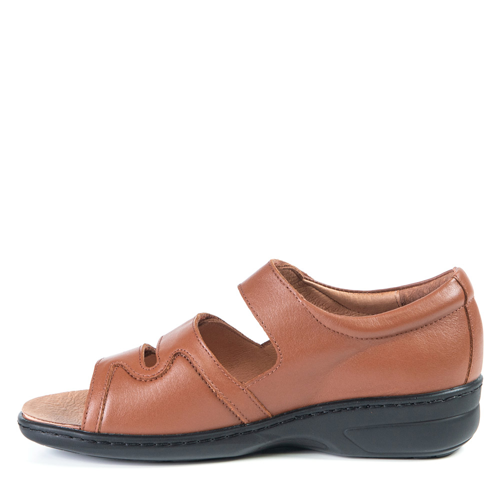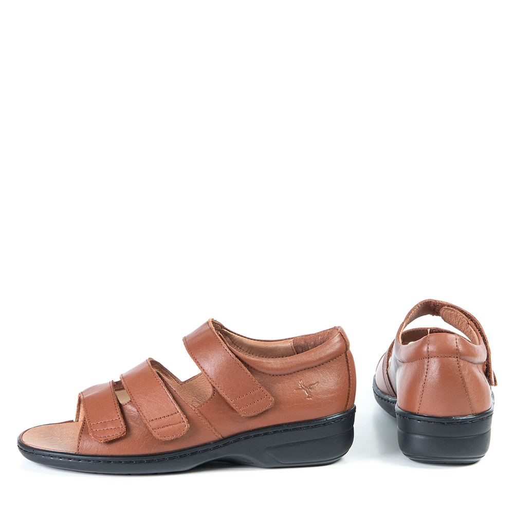 Cette sandale tan à petit talon vous donnera un peu plus de hauteur sans toutefois négliger votre confort qui est très important pour nous. Les courroies de velcro sont ajustables à votre guise. Vous l'adorerez!