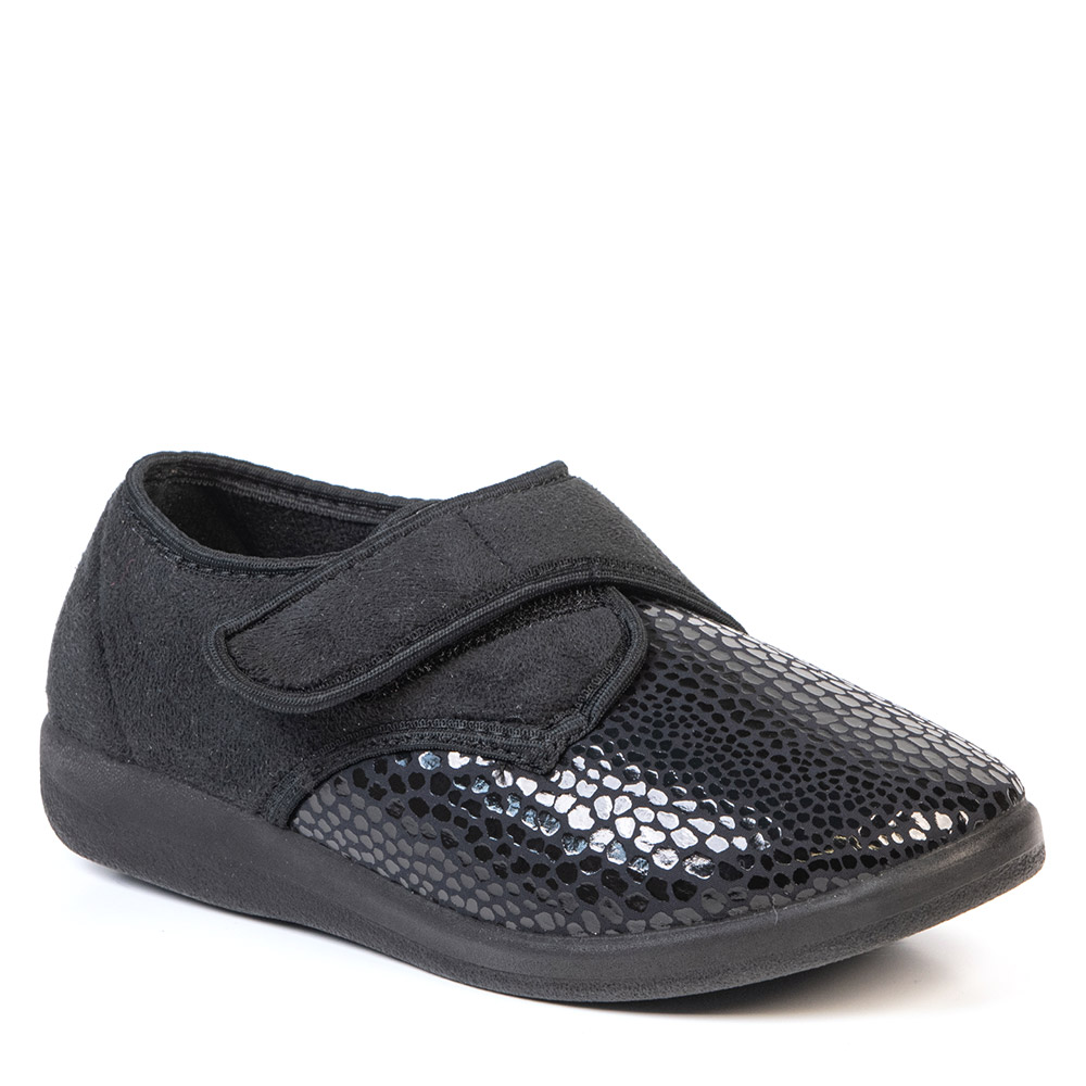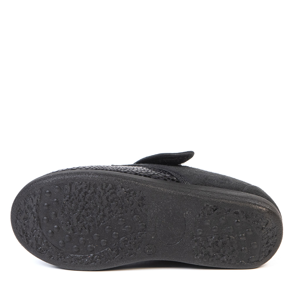 Cette pantoufle noire vous apportera un confort garanti et vous soulagera de vos problèmes de pieds. Vous ne voudrez plus les retirer. Insérez-y vos orthèses grâce à la fausse semelle amovible.