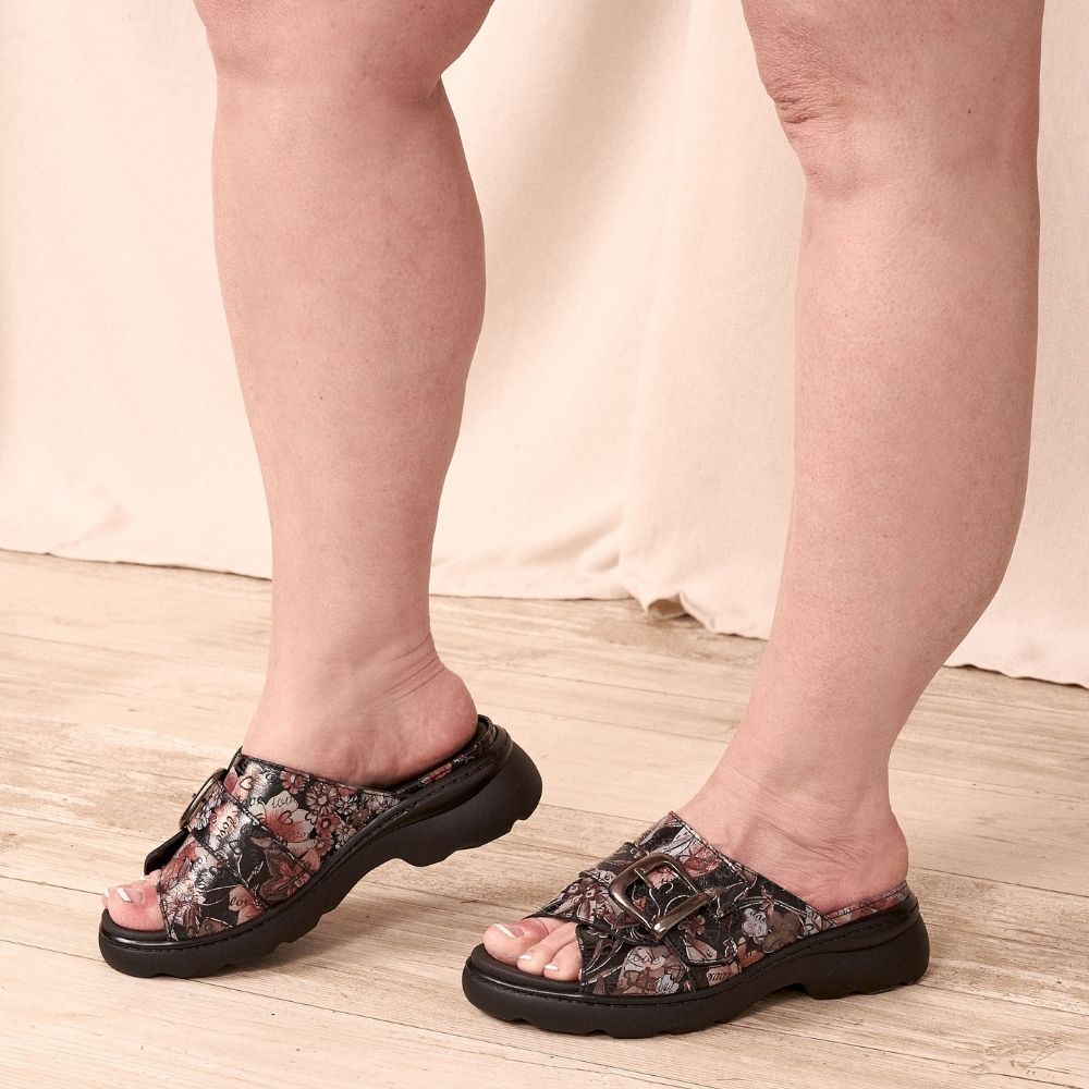 Les mules ont la côte cette saison ! Cette belle mule à imprimé floral peut se porter avec un look plus décontracté ou plus chic. Vous adorerez sa large bande avec velcro, permettant l'ajustement parfait.